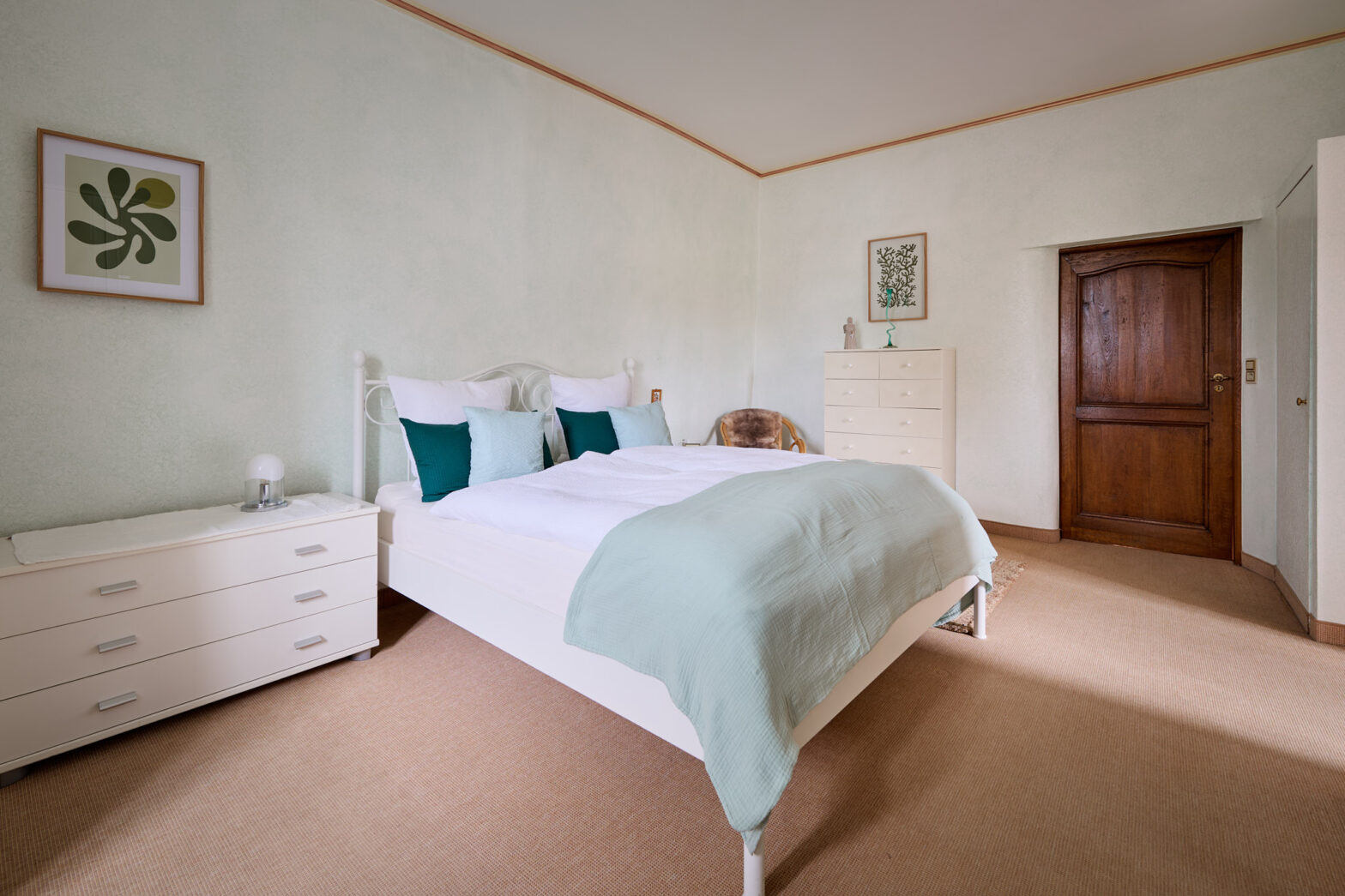 Die Ferienwohnung verfügt über ein Schlafzimmer mit Doppelbett und ein weiteres Schlafzimmer mit zwei Einzelbetten.